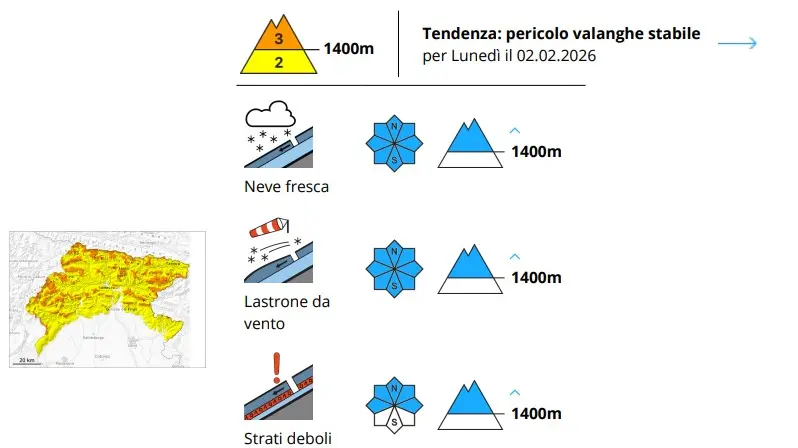 Per le prossime ore non si prevedono miglioramenti significativi: la tendenza indica un pericolo stabile anche per lunedì, con tempo nuvoloso che potrebbe rallentare i processi di assestamento della neve.
