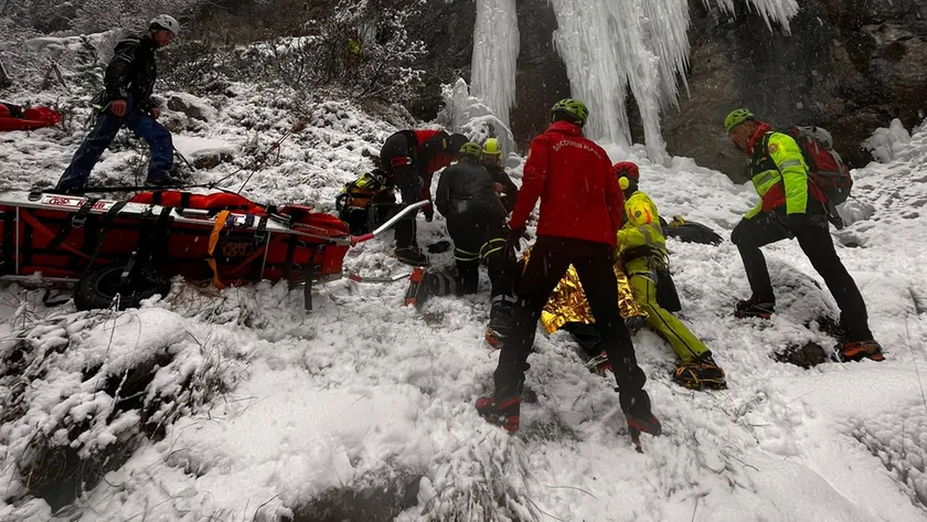 Precipita dalla cascata di ghiaccio sotto la neve. Sono gravi le conizioni di un iceclimber, precipitato da una cascata di ghiaccio a Perarolo e recuperato grazie a un complesso intervento di soccorso. Verso le 10.50 di oggi, sabato 24 gennaio, il Soccorso alpino di Pieve di Cadore è stato allertato dalla centrale del 118, che aveva ricevuto la chiamata dei due compagni del 37enne di Vigo di Cadore, volato da primo mentre stava scalando la colata e caduto per circa 8 metri, perdendo coscienza a seguito dei traumi causati dall'urto con il ghiaccio.