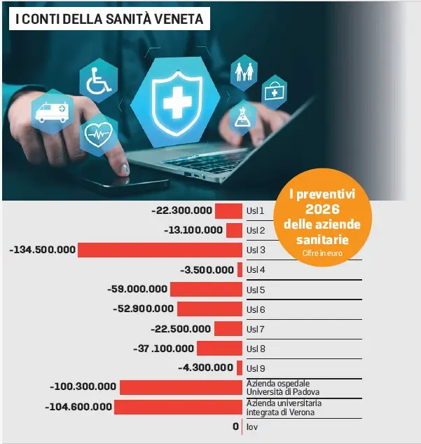 L’Azienda di Verona (– 104, 6 milioni) punta su un recupero nell’area dei ricoveri. Lo Iov è l’unica azienda sanitaria a indicare il pareggio.