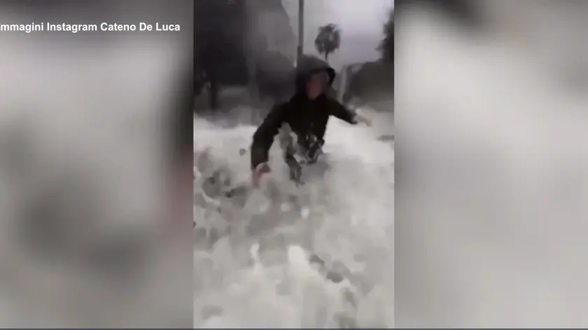 Maltempo nel Messinese, semi-travolti da un'onda in diretta Fb