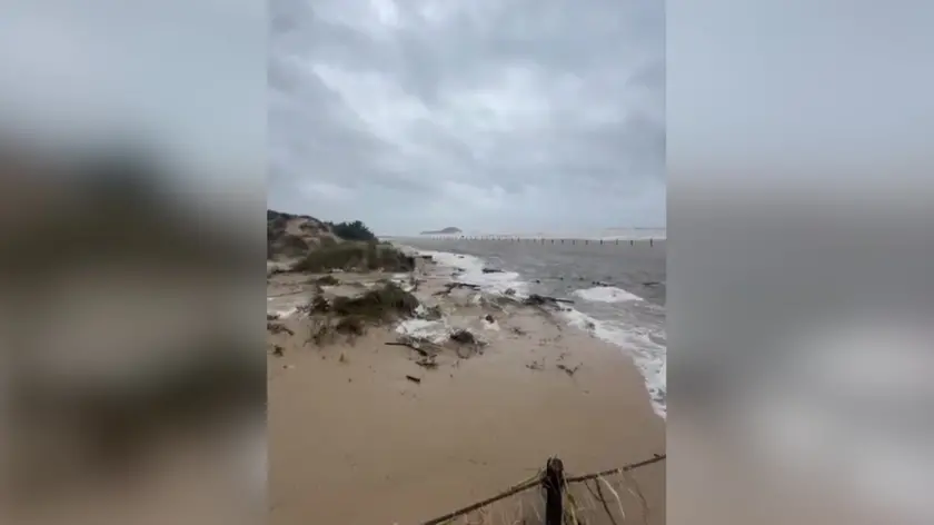 Maltempo in Sardegna, il ciclone Harry cancella una spiaggia a Chia